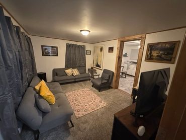 Smart TV with streaming capabilities. Two couches that fold out for additional sleeping surfaces.